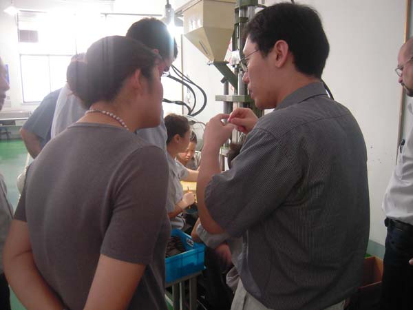 圖一:李總向德國客戶介紹產品注塑細節