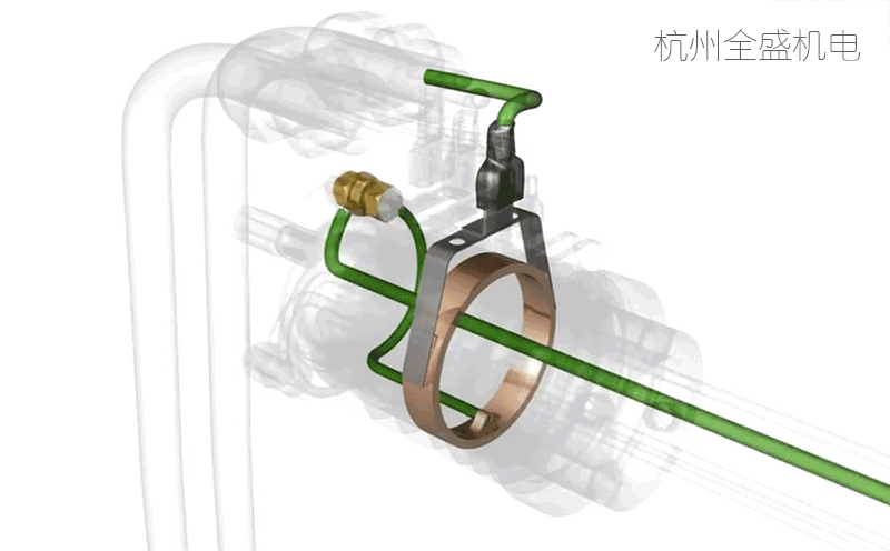 如圖所示:碳刷滑環結構圖,很容易知道碳刷滑環工作原理,這個圖其實是滑環的共同工作原理,現在新式的滑環只是把碳刷換成合金絲了,原理還是一樣的!
